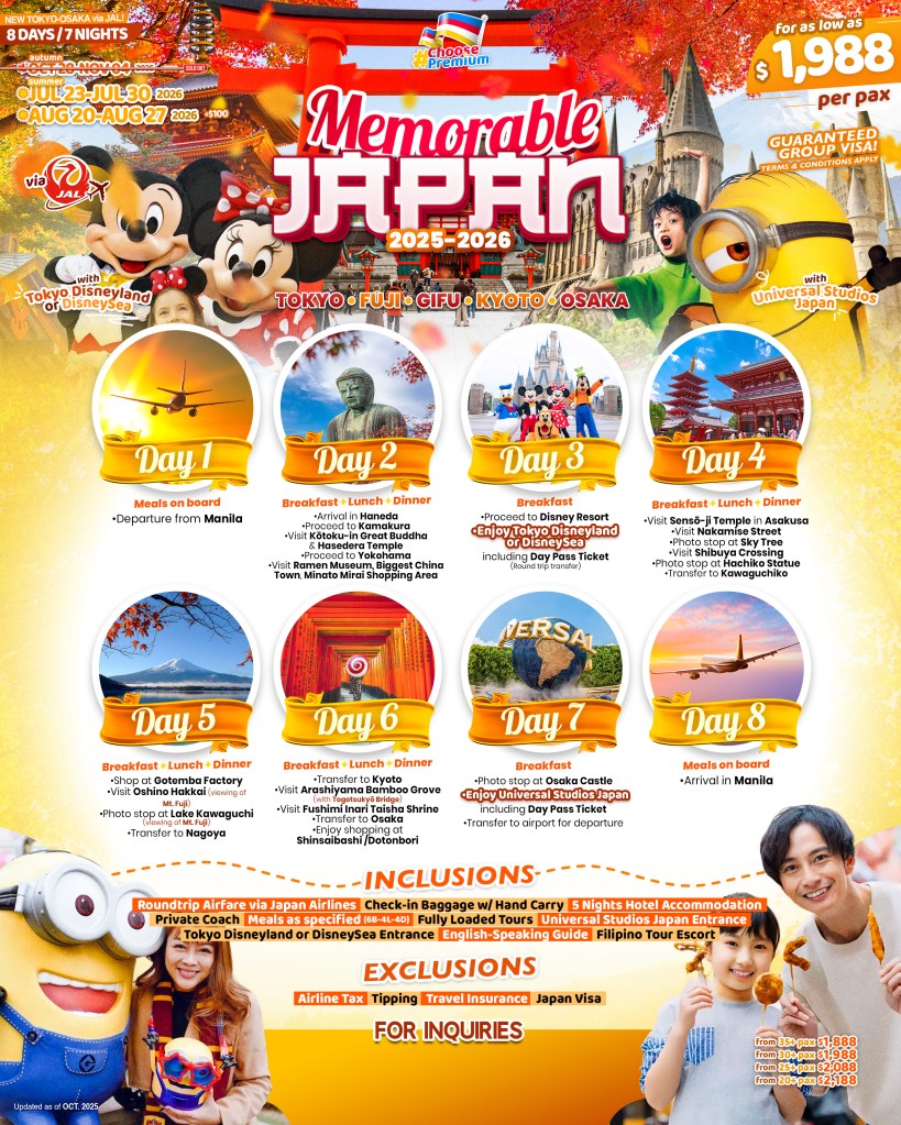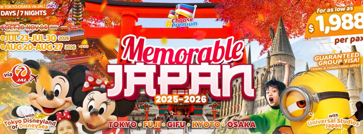 8d/7n MEMORABLE JAPAN (NEW TOKYO – OSAKA via JAL) 2026 If you are interested in join this tour, please fill in your details below: Go backThank you for your interest! A member of our team will get in touch with you. Name:(required) Warning Email Address:(required) Warning Mobile Number:(required) Warning Warning. SendSubmitting form Δ
