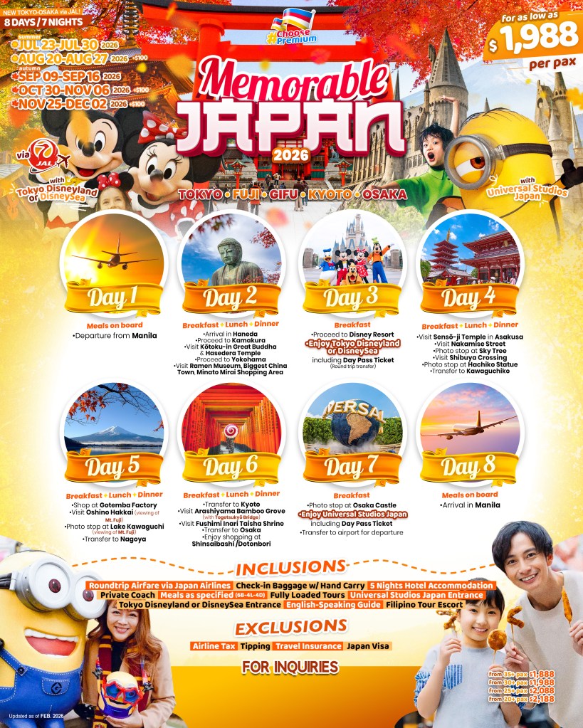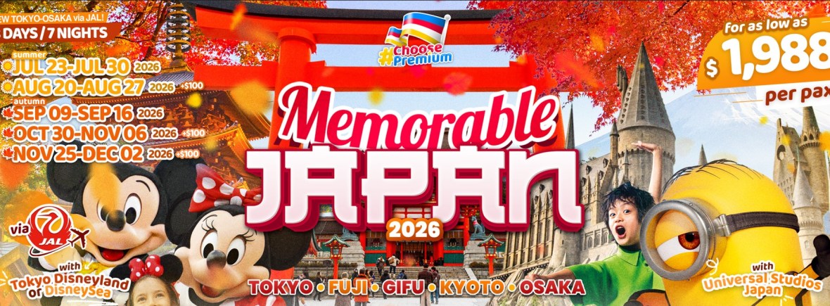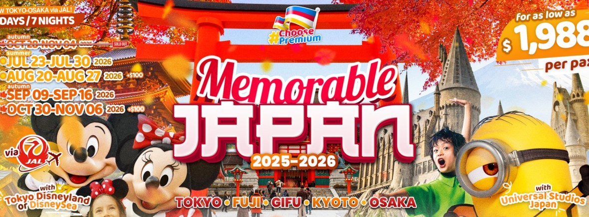 8d/7n MEMORABLE JAPAN (NEW TOKYO – OSAKA via JAL) 2026 If you are interested in join this tour, please fill in your details below: ← BackThank you for your interest! A member of our team will get in touch with you. Name:(required) Email Address:(required) Mobile Number:(required) SendSubmitting form Δ