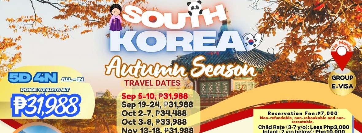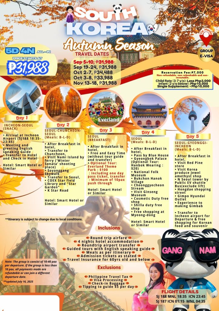 5d/4n SOUTH KOREA AUTUMN SEASON 2025! If you are interested to join this tour, please fill in your details below: Go backThank you for your interest! A member of our team will get in touch with you. Name(required) Warning Email Address(required) Warning Mobile Number(required) Warning Warning. SendSubmitting form Δ