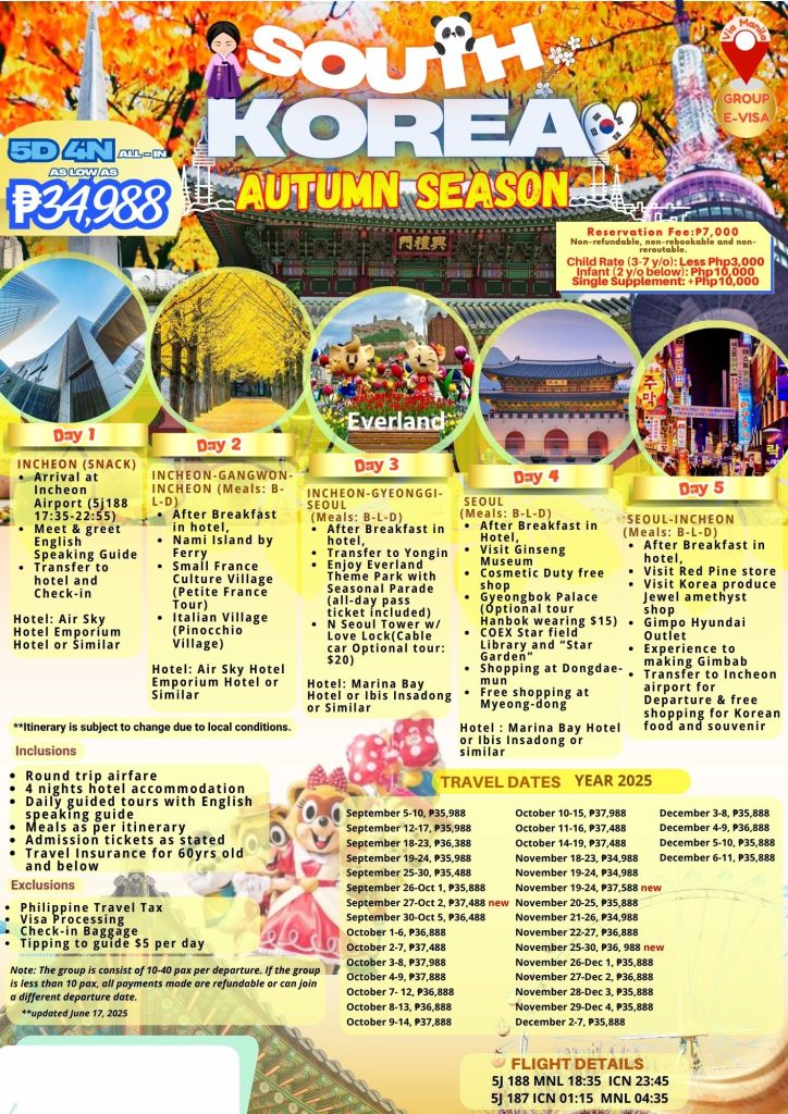 5d/4n SOUTH KOREA AUTUMN SEASON OCT|NOV|DEC 2025 If you are interested to join this tour, please fill in your details below: Go backThank you for your interest! A member of our team will get in touch with you. Name:(required) Warning Email Address:(required) Warning Mobile Number:(required) Warning Warning. SendSubmitting form Δ