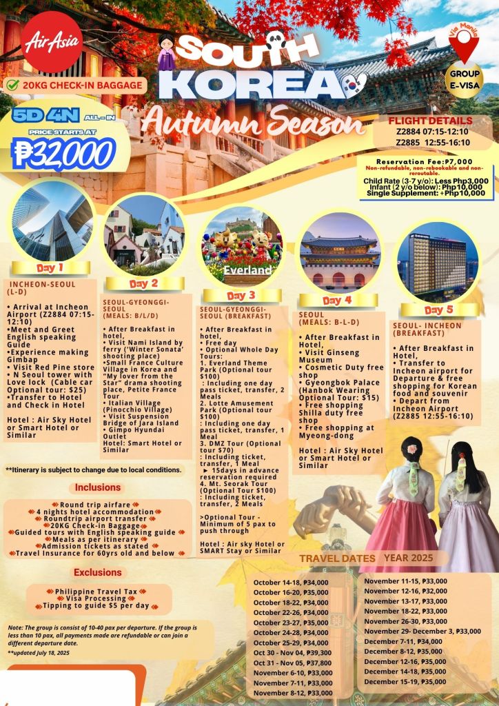 5d/4n SOUTH KOREA AUTUMN SEASON via Air Asia 2025 If you are interested to join this tour, please fill in your details below: Go backThank you for your interest! A member of our team will get in touch with you. Name(required) Warning Email Address(required) Warning Mobile Number(required) Warning Warning. SendSubmitting form Δ