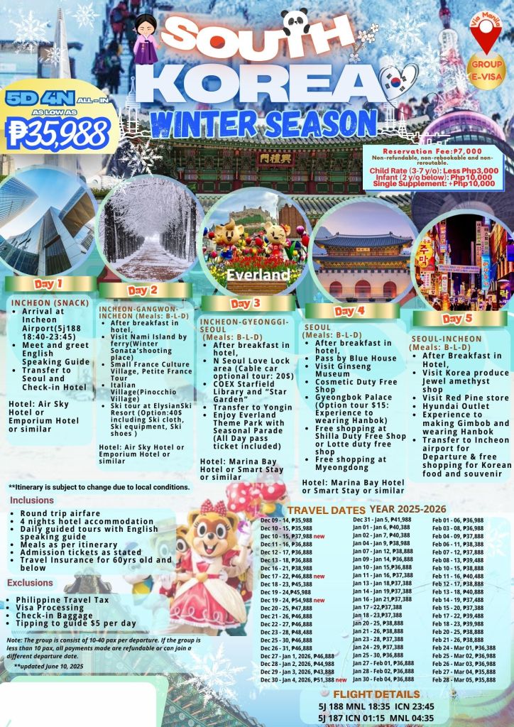 5d/4n SOUTH KOREA WINTER SEASON 2025 If you are interested to join this tour, please fill in your details below: Go backThank you for your interest! A member of our team will get in touch with you. Name:(required) Warning Email Address:(required) Warning Mobile Number:(required) Warning Warning. SendSubmitting form Δ