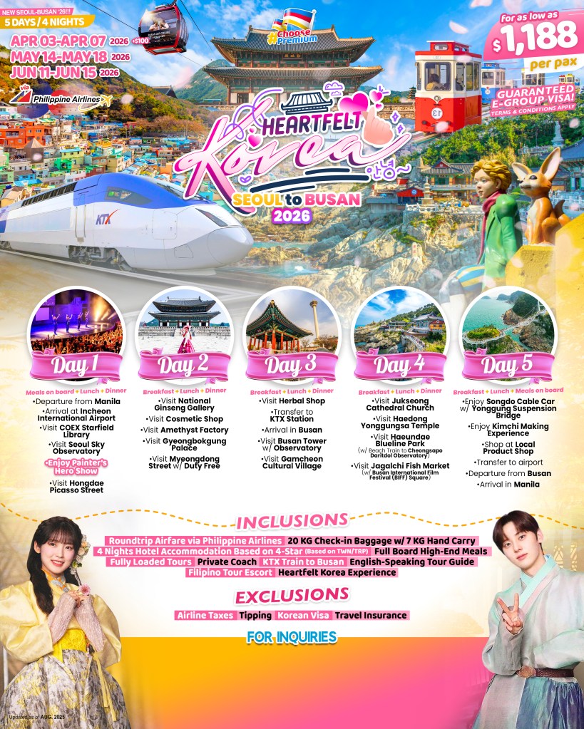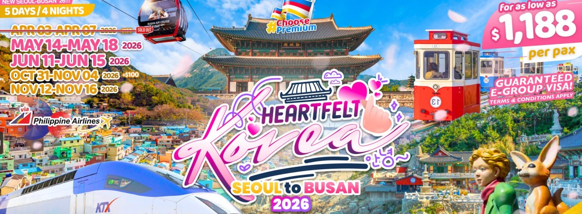 5d/4n HEALTFELT KOREA NEW SEOUL TO BUSAN ’26!!! If you are interested to join this tour, please fill in your details below: ← BackThank you for your interest! A member of our team will get in touch with you. Name:(required) Email Address:(required) Mobile Number:(required) SendSubmitting form Δ