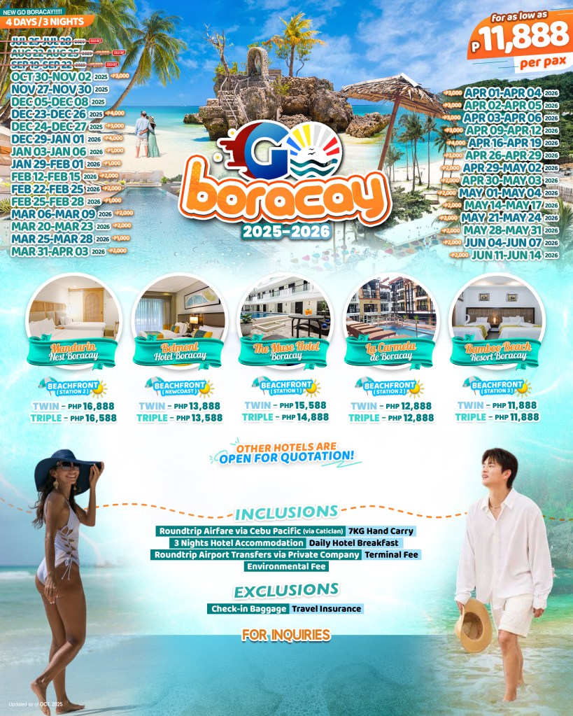 4d/3n NEW GO BORACAY 2025 – 2026 EPSON MFP image If you are interested to join this tour, please fill in your details below: Go backThank you for your interest! A member of our team will get in touch with you. Name:(required) Warning Email Address:(required) Warning Mobile Number:(required) Warning Warning. SendSubmitting form Δ
