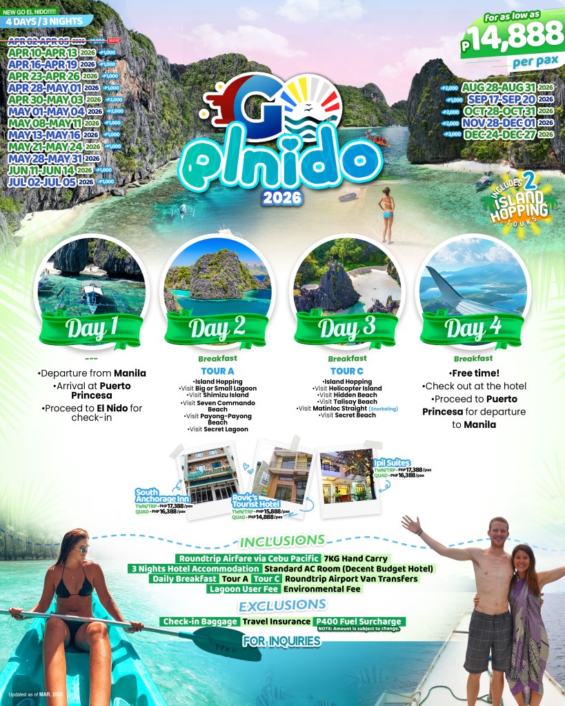 4d/3n NEW GO EL NIDO TOUR 2026 If you are interested to join this tour, please fill in your details below: ← BackThank you for your interest! A member of our team will get in touch with you. Name:(required) Email Address:(required) Mobile Number:(required) SendSubmitting form Δ